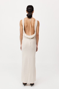 The Draped Cowl Dress features an adjustable neck strap for the perfect fit and an invisible side zip that maintains a sleek silhouette. Falling gracefully to a maxi length, the Draped Cowl Dress is highlighted by a low back, adding a hint of skin—perfect for any special occasion. DETAILS Materials - 59% LENZING™Lyocell Filament / 41% LENZING™ ECOVERO™ - LENZING™Certificate Garment Details - Adjustable neck strap, invisible side zip, low cowl back, maxi length Manufacturing - Fairwear Audit - OEKO-TEX Standard 100 Certification - Manufacturer has signed St. Agni Code of Conduct - Responsibly made in China CARE - Dry clean P - Do not soak - Do not bleach - Do not tumble dry - Iron on low temperature under a cloth