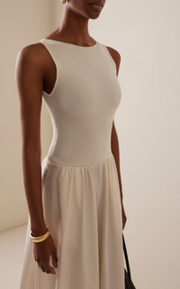 The clean-cut simplicity signature to the Bryon Bay label is never without cool ‘90s cuts. In the brand’s trademark natural and GOTS-certified materials, this season is a case in point — and proof that the coolest pieces needn’t always shout. PRODUCT DETAILS - Pre-Fall '25 - Zip fastening - Composition: 53% viscose, 47% recycled polyester; Skirt: 100% BCI cotton - Designer color: Ecru - Dry clean - Imported SIZE & FIT - Our model is wearing a size Small - Model is 5'10.5" with a 32" bust, 24.5" waist, and 34" hip - Designed for a slim fit