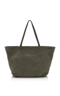 Exclusive Large Woven Leather Trapeze Tote Bag grey