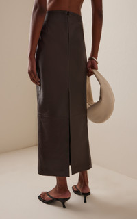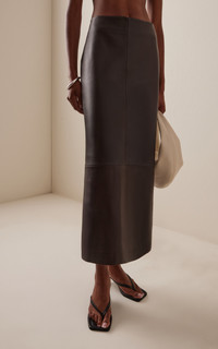 The clean-cut simplicity signature to the Bryon Bay label is never without cool ‘90s cuts. In the brand’s trademark natural and GOTS-certified materials, this season is a case in point — and proof that the coolest pieces needn’t always shout. Sleek and timeless, the Leather Column Skirt cuts a sharp figure. Designed with a low waist, the Leather Column Skirt is an understated statement piece. PRODUCT DETAILS - Fall '25 - Zip fastening - Composition: 100% lambskin leather; Lining: 100% Tencel™ lyocell - Designer color: Coffee - Specialist clean - Imported SIZE & FIT - Our model is wearing a size Small - Model is 5'10" with a 31" bust, 23.5" waist, and 33.5" hip