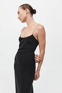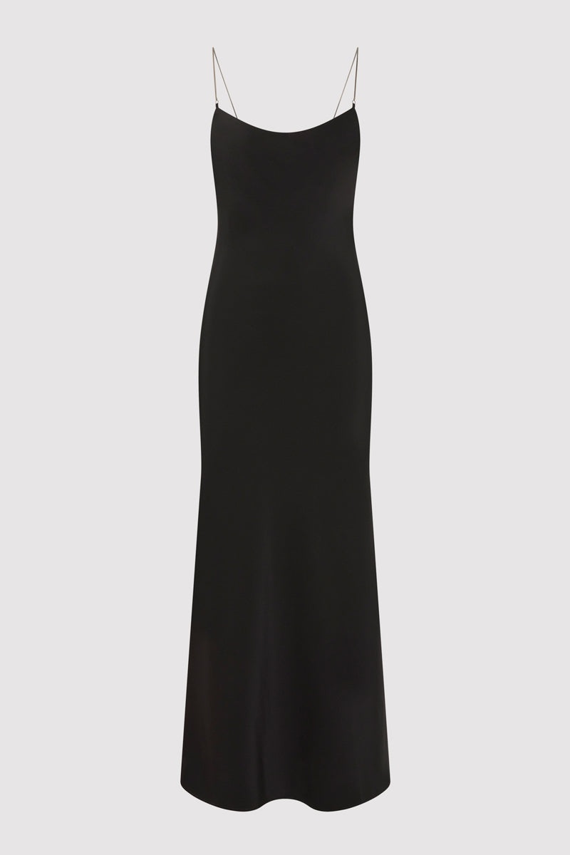 Fine Chain Silk Slip Dress - Black