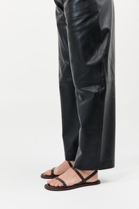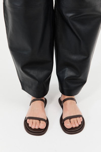 The Fine Strap Sandal is designed with all-day comfort in mind. Featuring fine straps with delicate stitch detailing, offering a sleek, minimalist look. A padded insole and slingback design ensures secure and comfortable wear. The Fine Strap Sandal combines style and ease for an elevated, laid-back aesthetic. DETAILS Materials - Upper: 100% Lambskin - Insole: 100% Calfskin - Outsole: 100% Rubber - Chrome Free Dyed - Leather Working Group (LWG) Certified Garment Details - Lambskin upper straps with stitch detail, padded insole, flat base silhouette, rubber outsole Manufacturing - Manufacturer has signed the St. Agni Code of Conduct - BSCI Social Audit - Made responsibly in China CARE Natural Leather Protector is recommended before wear. Keep out of direct sunlight to avoid fading and avoid wet weather. Marks and variations in the leather are not considered a fault but are inherent to the natural beauty and uniqueness of the leather. When not in use we advise to store your St. Agni product in its protective bag and to occasionally treat it with a leather conditioner to keep it hydrated.