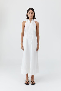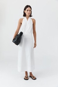 Crafted from a breathable blend of Cotton and recycled Nylon, the Halter Wrap Dress embodies fluid ease and minimalism. Featuring a flattering halter neckline and wrap silhouette, it secures with a concealed press-stud at the front and self-ties at the back, leaving the shoulders and back exposed. Cut to a 7/8 length, the Halter Wrap Dress is a versatile style for both casual and special occasions. DETAILS Materials - 66% Cotton / 31% Recycled Nylon / 3% Spandex - Recycled Nylon (GRS) Certificate Garment Details - 7/8 length, halter neckline, sleeveless, wrap silhouette with concealed press stud fastening, back self-tie fastening, unlined - Slim fit Manufacturing - SMETA Sedex Ethical Audit - Manufacturer has signed the St. Agni Code of Conduct - Responsibly made in China CARE - Cool hand wash - Wash with similar colours - Do not bleach - Do not tumble dry - Cool iron under cloth - Dry cleanable (P)