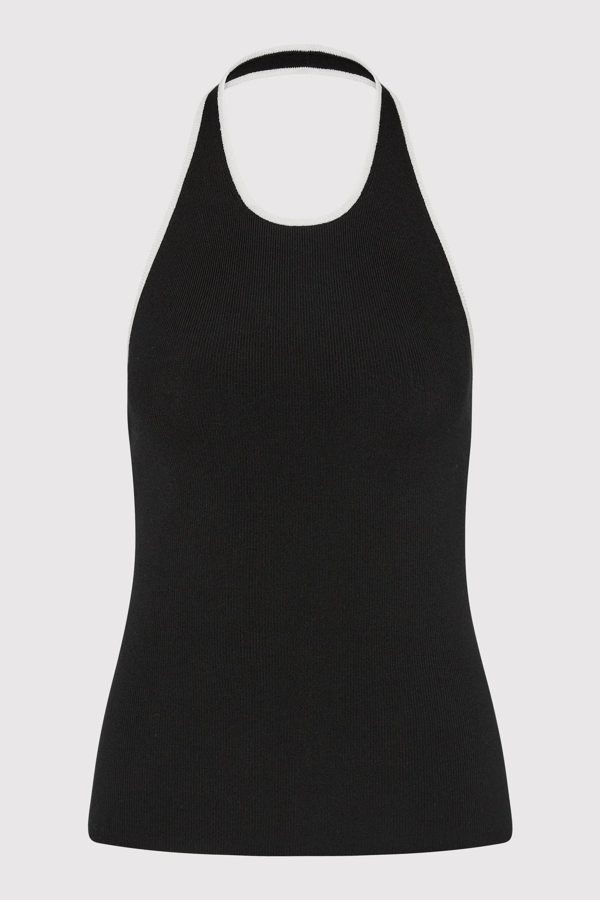 Featuring a halter neckline and low scooped back, the Fine Line Halter Top is defined by clean lines and a minimalist silhouette. Contrast piping adds a refined, modern touch. Wear it alone or layered over the Fine Line Long Sleeve Top for versatile styling. DETAILS Materials - 82% TENCEL™ Lyocell - 16% Nylon - 2% Elastane - LENZING™ Certificate Garment Details - Halter neckline, sleeveless, low scooped back, contrast piping detail, hip length Manufacturing - SMETA Sedex Ethical Audit - Manufacturer has signed the St. Agni Code of Conduct - Responsibly made in China CARE - Wash and dry garment turned inside out - Cold hand wash separately in mild detergent - Do not soak - Do not bleach - Do not twist or wring - Do not tumble dry - Dry flat in shade - Ease into shape - Cool iron on reverse side - Do not hang - Store flat - Do not dry clean (X)