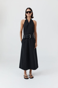 Crafted from a breathable blend of Cotton and recycled Nylon, the Halter Wrap Dress embodies fluid ease and minimalism. Featuring a flattering halter neckline and wrap silhouette, it secures with a concealed press-stud at the front and self-ties at the back, leaving the shoulders and back exposed. Cut to a 7/8 length, the Halter Wrap Dress is a versatile style for both casual and special occasions. DETAILS Materials - 66% Cotton / 31% Recycled Nylon / 3% Spandex - Recycled Nylon (GRS) Certificate Garment Details - 7/8 length, halter neckline, sleeveless, wrap silhouette with concealed press stud fastening, back self-tie fastening, unlined - Slim fit Manufacturing - SMETA Sedex Ethical Audit - Manufacturer has signed the St. Agni Code of Conduct - Responsibly made in China CARE - Cool hand wash - Wash with similar colours - Do not bleach - Do not tumble dry - Cool iron under cloth - Dry cleanable (P)