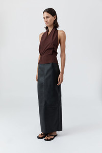 Lightweight and versatile, the Halter Wrap Top is a refined warm weather essential. Crafted from a breathable blend of Cotton and recycled Nylon, featuring a flattering halter neckline and wrap silhouette. Securing with a concealed press-stud at the front and self-ties at the back, leaving the shoulders and back exposed. DETAILS Materials - 66% Cotton / 31% Recycled Nylon / 3% Spandex - Recycled Nylon (GRS) Certificate Garment Details - Halter neckline, sleeveless, wrap silhouette with concealed press stud fastening, back self-tie fastening, unlined - Slim fit Manufacturing - SMETA Sedex Ethical Audit - Manufacturer has signed the St. Agni Code of Conduct - Responsibly made in China CARE - Cool hand wash - Wash with similar colours - Do not bleach - Do not tumble dry - Cool iron under cloth - Dry cleanable (P)
