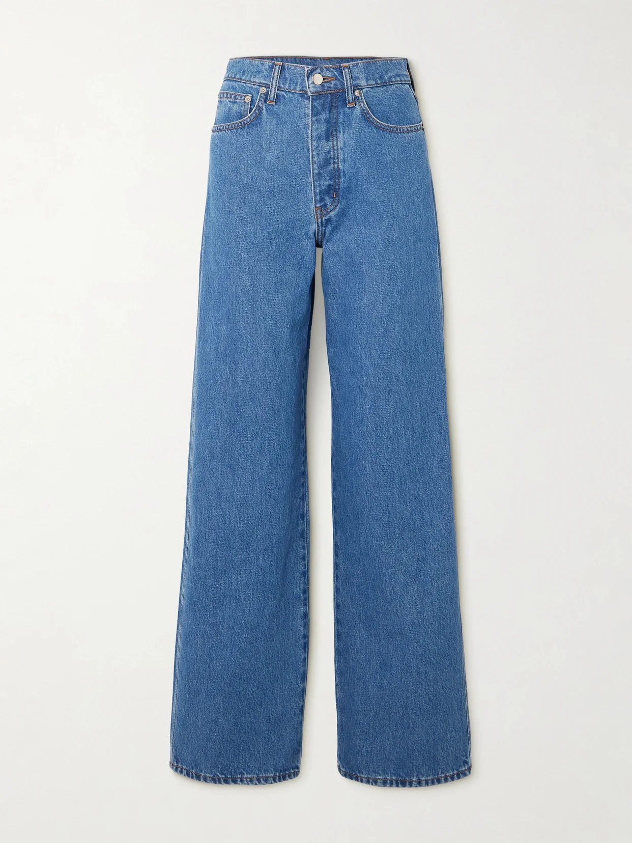 Immaculately cut staples are what ST. AGNI does best. These jeans are made from organic cotton in a classic blue wash with a high-rise waist and wide legs. Wear them with everything from oversized tees to chunky knits.