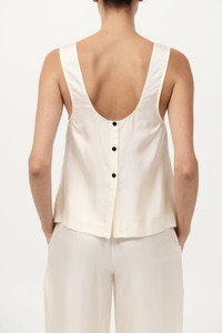 The Jordan Button Up Top is a minimal silhouette elevated by its subtle detailing. Crafted in silk twill, it features a low scoop neckline and a buttoned split at the back for an athletic touch. The Jordan Button Up Top is a refined piece for elevated day-to-evening wear. DETAILS Materials - 100% Silk Twill Garment Details - Front & back low scoop neckline, sleeveless, shoulder straps, bust darts, center-back press snap split detail, unlined Manufacturing - SMETA Sedex Ethical Audit - OEKO-TEX Standard 100 Certification - R - esponsibly made in China CARE - Dry clean (P) - Do not bleach - Do not tumble dry - Iron on low temperature