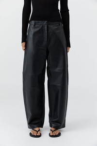 The Leather Balloon Pants feature a loose, voluminous balloon leg that creates a relaxed yet refined shape. Crafted from supple 100% lambskin and lined with TENCEL™ Lyocell for comfort. Pair with the Leather Panelled Shirt for a seamless ensemble that exudes understated luxury in wearable form. DETAILS Materials - 100% Lambskin - Lining: 100% TENCEL™ Lyocell - Leather Working Group (LWG) Certified Garment Details - Mid-rise, fly front closure, belt loops, front side pockets, back welt pockets, loose balloon leg - Relaxed fit Manufacturing - SGS Social Accountability - 8000 Audit Certification - Responsibly made in India CARE Natural Leather Protector is recommended before wear. Use a good quality leather conditioner or protective spray to treat the product to increase its durability. Regularly clean leather with a soft brush or cloth, regularly air out leather, and where possible do not get leather wet. Blot away water or moisture as soon as possible, do not immerse leather in water to clean, do not dry wet leather with artificial heat like a radiator or hairdryer, do not machine wash leather, do not tumble dry leather, do not iron leather. Keep out of direct sunlight to avoid fading and avoid wet weather. Marks and variations in the leather are not considered a fault but are inherent to the natural beauty and uniqueness of the leather. When not in use we advise to store your St. Agni product in its protective bag and we recommend to continually treat it with a leather conditioner to keep it hydrated for a long life.