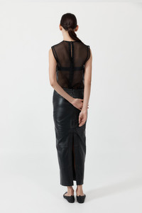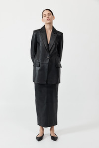 The Leather Column Skirt is a wardrobe hero crafted from supple Nappa leather designed to soften over time. Featuring a maxi length, form fitted silhouette and low waist, the Leather Column Skirt is an elevated statement piece for the minimalist urban dresser. DETAILS Materials - 100% Nappa Lamb Leather - Lining: Lenzing Tencel™ Lyocell - Recycled Polyester Yarn certified Garment Details - Low waist, maxi length. Manufacturing - Manufacturer has signed the St. Agni Code of Conduct - Manufacturer is BSCI accredited - Responsibly made in China CARE - Dry clean only - Do not bleach - Do not tumble dry