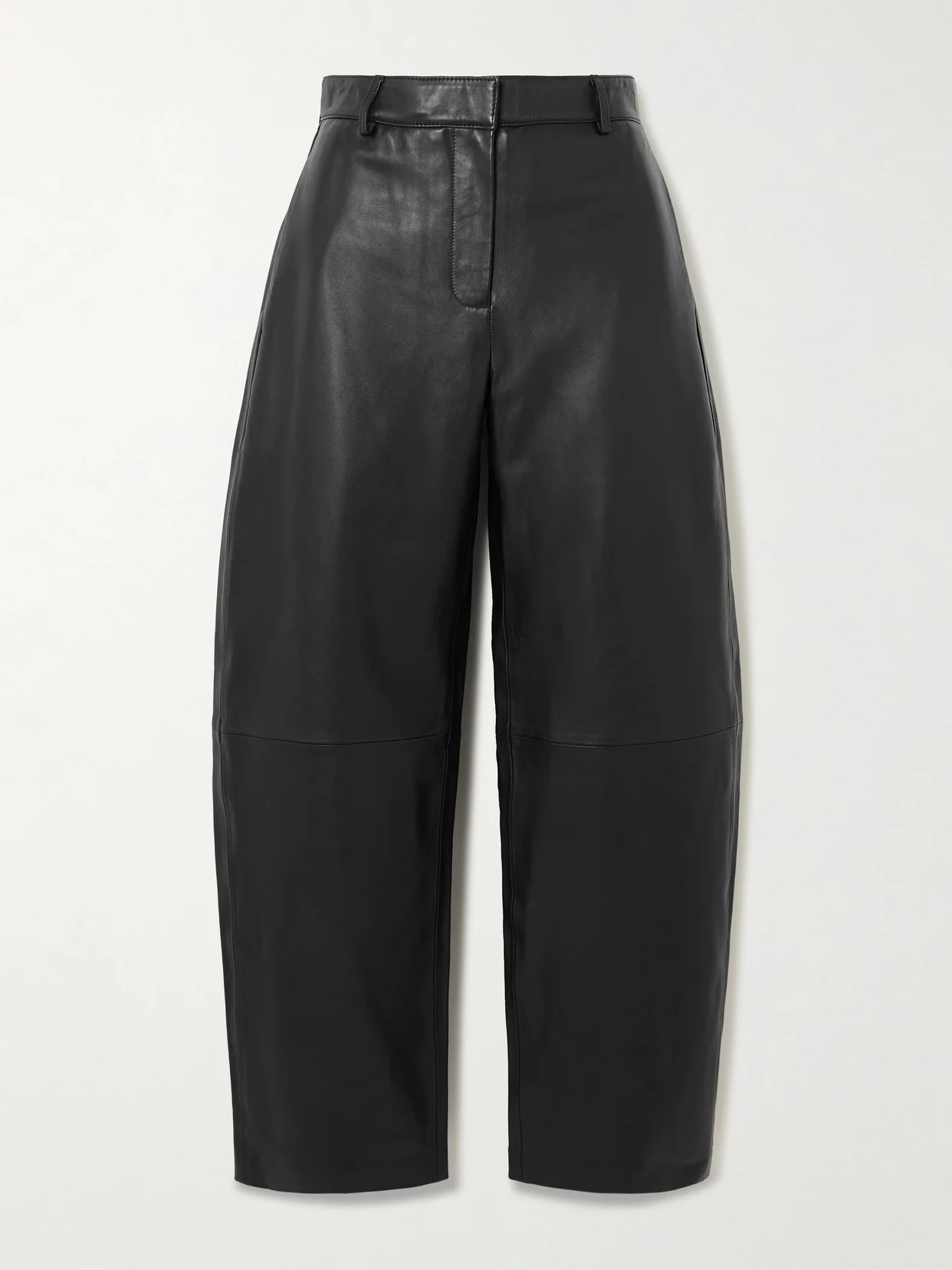 ST. AGNI's pants are made from supple leather and fully backed in TENCEL™ Lyocell that feels so soft against your skin. They sit high on the waist and have curvy legs. Lower-Impact Materials. This product is made using at least 50% lower-impact materials oringredients. Find out more about our NET SUSTAIN criteria here.