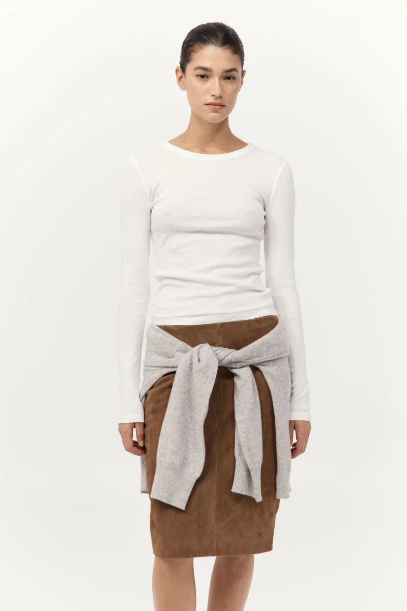 A slim-line minimalist staple, the Organic Cotton Long Sleeve Top boasts a crew neckline, long-sleeve silhouette and 100% organic cotton construction. Designed to layer seamlessly with your capsule wardrobe, the Organic Cotton Long Sleeve Top elevates a classic basic in both look and feel. Pair it with your everyday tailored trousers and a slick-back bun for timeless uniform dressing. DETAILS Materials - 100% Organic Cotton - Organic Content Standard (OCS) Certificate Garment Details - Fitted sleeves, crew neckline with neck bind Manufacturing - Manufacturer has signed the St. Agni Code of Conduct - SMETA Sedex Ethical Audit - Responsibly made in China CARE - Wash and dry garment inside out - Cold hand wash separately - Do not soak - Do not twist or wring - Do not tumble dry - Dry flat in the shade - Cool iron on reverse side - Do not dry clean (X)