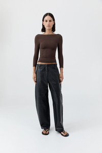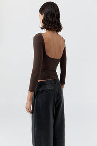 The Soft Jersey Ballerina Top is crafted from organic cotton, featuring a bateau neckline, scooped back, and 3/4 sleeves. Offering a slim-line minimalist silhouette and a second-skin fit, the Soft Jersey Ballerina Top is a refined wardrobe essential. DETAILS Materials - 92% Organic Cotton / 8% Elastane - Organic Content Standard (OCS) Certificate Garment Details - 3/4 sleeve, bateau neckline, scooped back - Slim fit Manufacturing - SMETA Sedex Ethical Audit - Manufacturer has signed the St. Agni Code of Conduct - R - esponsibly made in China CARE - Wash and dry garment turned inside out - Cold hand wash separately - Do not soak - Do not bleach - Do not twist or wring - Do not tumble dry - Dry flat in shade - Cool iron on reverse side - Do not dry clean (X)