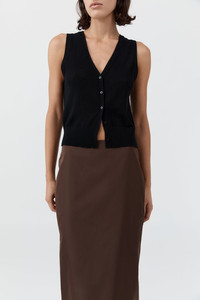 The Merino Wool Oupa Vest is crafted from 100% responsibly sourced merino wool, offering natural warmth and breathability in a timeless silhouette. Designed with a relaxed fit, featuring a V-neckline and a button-down placket. Providing versatile styling, wear the Merino Wool Oupa Vest as is or in reverse. DETAILS Materials - 100% RWS Merino Wool - RWS Wool Certificate Garment Details - V-neckline, sleeveless, button down placket, ribbed neckline and armhole, deep ribbed hem - Relaxed fit Manufacturing - SMETA Sedex Ethical Audit - Manufacturer has signed the St. Agni Code of Conduct - R - esponsibly made in China CARE - Wash and dry garment turned inside out - Cold hand wash separately in wool detergent - Do not soak - Do not bleach - Do not twist or wring - Do not tumble dry - Dry flat in shade - Ease into shape - Cool iron on reverse side - Do not hang, store flat - Dry cleanable (P)