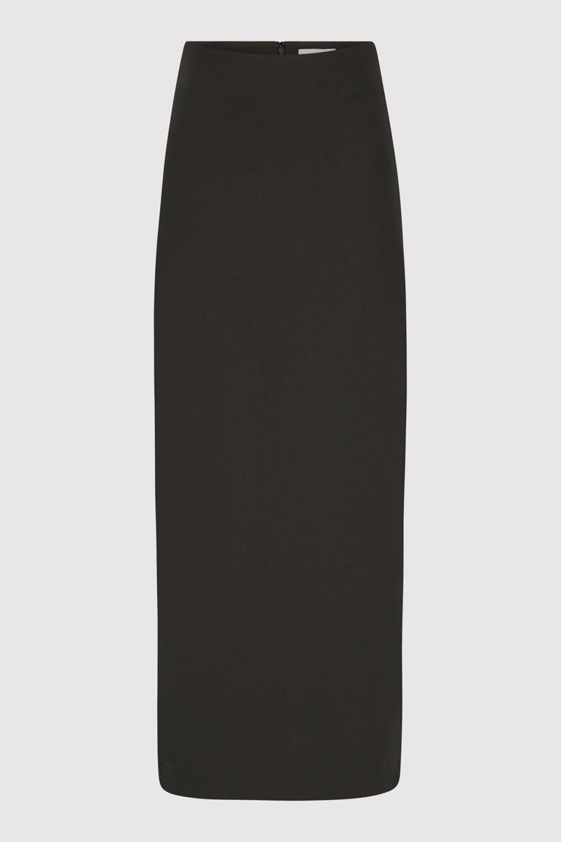 The Minimal Column Skirt is crafted with a mid-rise fit and a clean, tailored silhouette. Featuring a centre-back invisible zip and back vent for ease of movement, the Minimal Column Skirt offers a sleek, modern look. Designed for effortless versatility, the Minimal Column Skirt is a refined staple for any wardrobe. DETAILS Materials - 70% Recycled Nylon - 30% Organic Cotton - Recycled Polyester (GRS) Certificate - Organic Content Standard (OCS) Certificate Garment Details - Mid-rise, maxi length, back welt pocket, center-back invisible zip, back darts, vent, unlined Manufacturing - OEKO-TEXT 100 Certification - Manufacturer has signed the St. Agni Code of Conduct - Responsibly made in China CARE - Cool gentle machine wash - Wash with similar colours - Do not bleach - Do not tumble dry - Iron on low temperature