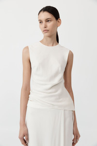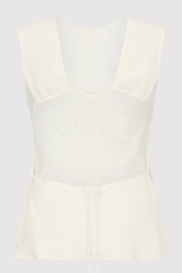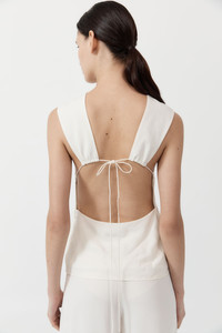A simple yet unexpected approach to the classic white tank, the Rouleau Tie Top boasts a crew neck, open back, rouleau tie detail and hip length. Elegant and elevated, the Rouleau Tie Dress flatters the figure by playing with negative space and a clean silhouette. DETAILS Materials - 59% LENZING™Lyocell filament / 41% LENZING™ECOVERO™ Garment Details - Crew neck, open back, rouleau tie detail, hip length, slim fit Manufacturing - Manufacturer has signed the St. Agni Code of Conduct - BSCI audited - LENZING™certification - OEKO-TEX 100 certification - Responsibly made in China CARE - Dry clean (P) - Do not soak, bleach or tumble dry - iron on low heat under cloth