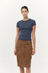 A forever favourite silhouette, the Organic Cotton Baby Tee features a classic crewneck cropped silhouette, short-sleeve design and fitted shape. Easy for everyday wear and crafted from 100% organic cotton for a super soft hand feel. DETAILS Materials - 100% Organic Cotton - Organic Content Standard (OCS) Certificate Garment Details - Crew neck, cap sleeve, waist length - Fitted Manufacturing - SMETA Sedex Ethical Audit - Responsibly made in China CARE - Wash and dry garment turned inside out - Cold hand wash separately - Do not soak - Do not bleach - Do not twist or wring - Do not tumble dry - Dry flat in shade - Cool iron on reverse side - Do not dry clean (X)
