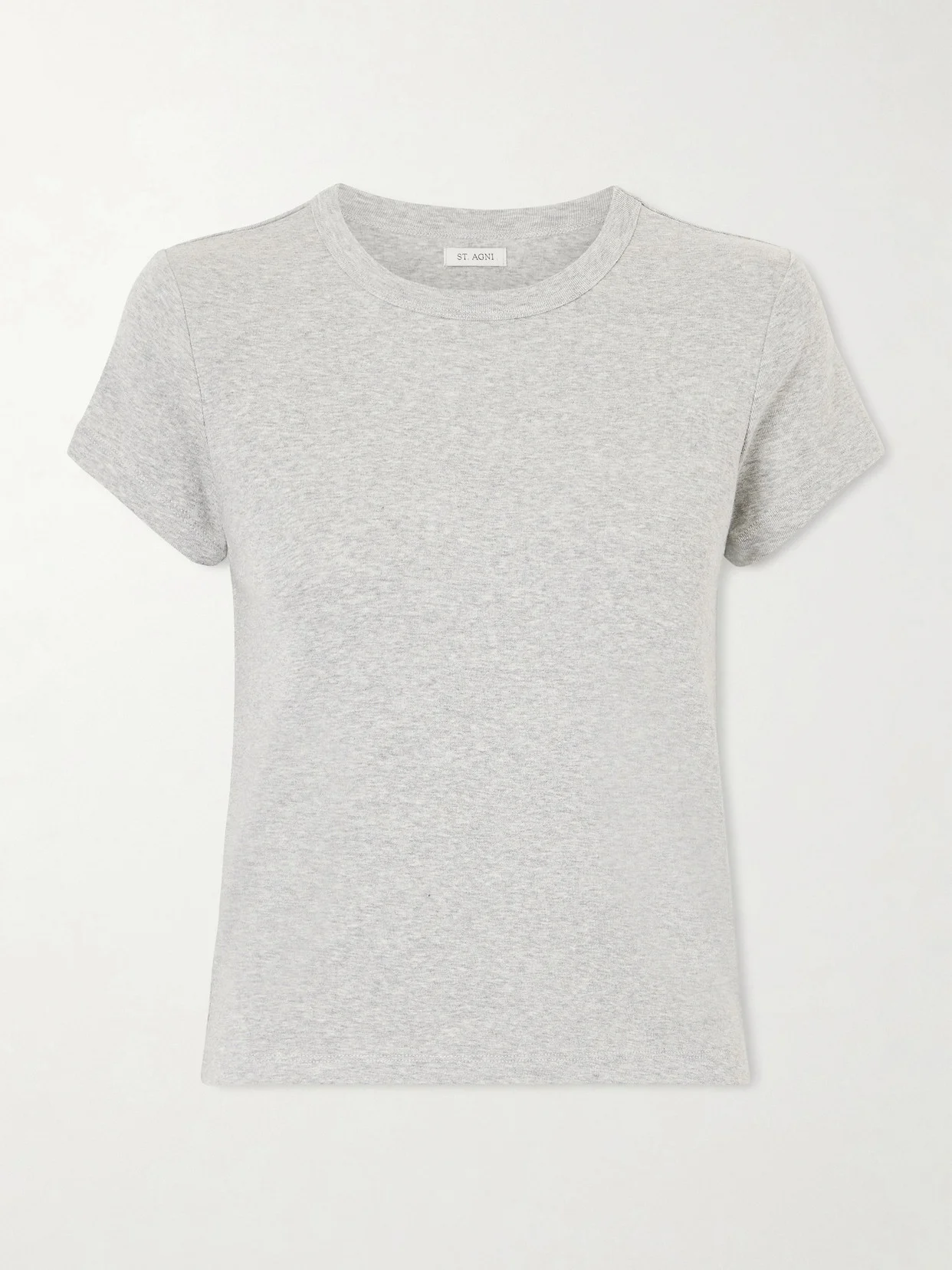 ST. AGNI's T-shirt encapsulates the label's minimalist aesthetic. Cut for a close fit, it's made from soft organic cotton-jersey in neutral gray-melange. Style it half-tucked into tailored trousers or relaxed denim. Lower-Impact Materials. This product is made using at least 50% lower-impact materials or ingredients. Find out more about our NET SUSTAIN criteria here.