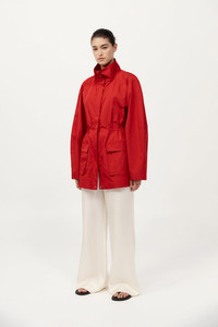 The Paper Taffeta Parka merges function with minimalist design. Featuring a stand collar, centre-front zip and raglan sleeves, its silhouette is adjustable using an internal drawcord waist with toggles. Unlined and lightweight, the Paper Taffeta Parka is ideal for layering in transitional climates. DETAILS Materials - 80% Recycled Polyester - 20% Silk - Recycled Polyester (GRS) Certificate - RWS Wool Certificate Garment Details - Stand collar, center-front zipper with press studs, raglan sleeves, internal drawcord waist with toggle, front flap pockets, unlined Manufacturing - Fairwear Audit - Manufacturer has signed the St. Agni Code of Conduct - Responsibly made in China CARE - Dry clean only - Do not bleach - Do not tumble dry - Iron on low temperature
