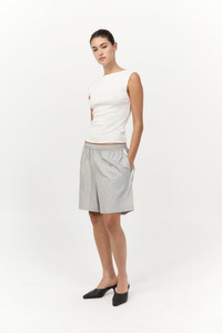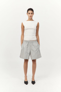 The Paper Taffeta Short offers a utilitarian approach to elevated essentials. Designed with a mid-rise elasticated waist and internal drawcord, balancing comfort with structure. Featuring functional side seam pockets and subtle tape detailing, the Paper Taffeta Short delivers a lightweight, unlined silhouette ideal for everyday wear. DETAILS Materials - 80% Recycled Polyester - 20% Silk - Recycled Polyester (GRS) Certificate - RWS Wool Certificate Garment Details - Mid-rise, elasticated waist, side seam pockets, side seam tape detail, internal waistband drawcord, unlined Manufacturing - Fairwear Audit - Manufacturer has signed the St. Agni Code of Conduct - Responsibly made in China CARE - Dry clean only - Do not bleach - Do not tumble dry - Iron on low temperature