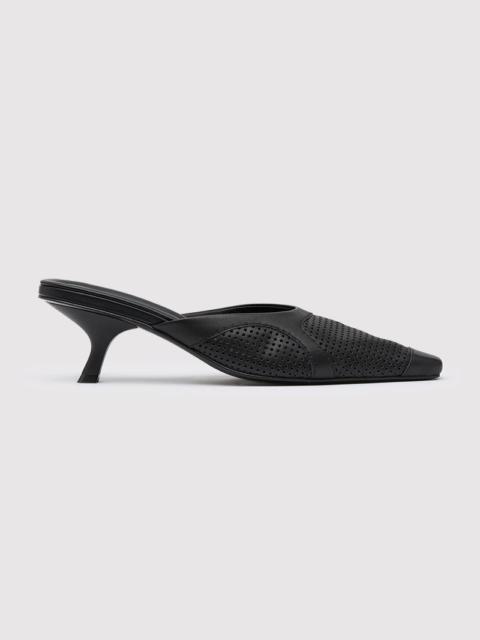 The Perforated Heel is textural and architectural in design. With a squared pointed toe and subtle kitten heel, its perforated leather upper is complemented by contrast leather detailing. Finished with a soft padded insole, the Perforated Heel is a versatile style with distinctive appeal. DETAILS Materials - Upper: 100% Calfskin Leather - Lining: 100% Lambskin Leather - Insole: 100% Calfskin Leather - Outsole: 100% Bovine Leather - Leather Working Group (LWG) Certified Garment Details - Kitten heel, squared pointed toe, perforated body with contrast leather design, soft padded insole, curved heel Manufacturing - BSCI Social Audit - Manufacturer has signed the St. Agni Code of Conduct - R - esponsibly made in China SIZING - Heel height: 6cm - Height (including insole): 7cm CARE Natural Leather Protector is recommended before wear. Keep out of direct sunlight to avoid fading and avoid wet weather. Marks and variations in the leather are not considered a fault but are inherent to the natural beauty and uniqueness of the leather. When not in use we advise to store your St. Agni product in its protective bag and to occasionally treat it with a leather conditioner to keep it hydrated.