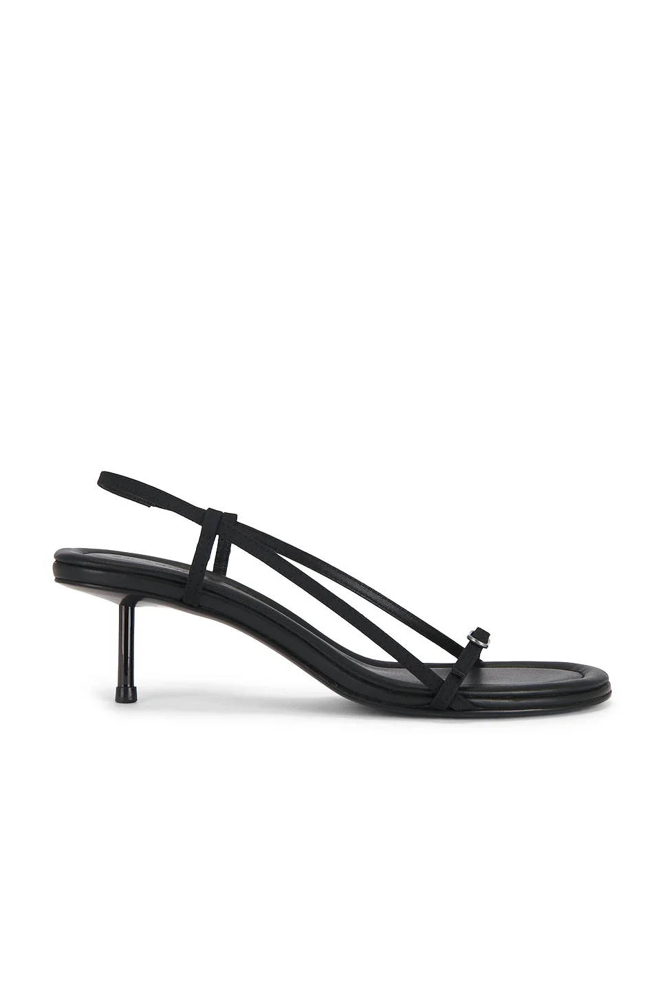 Details - Self: 80% recycled polyester, 20% silk - Made in China - Slip-on style - Padded leather footbed - Slim leather straps - Rounded toe - Leather Working Group (LWG) Certified - Approx 50mm/ 2 inch wedge - Our Style No. SGNF-WZ51 - Manufacturer Style No. R26-109BLK