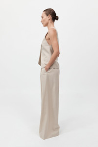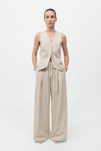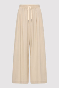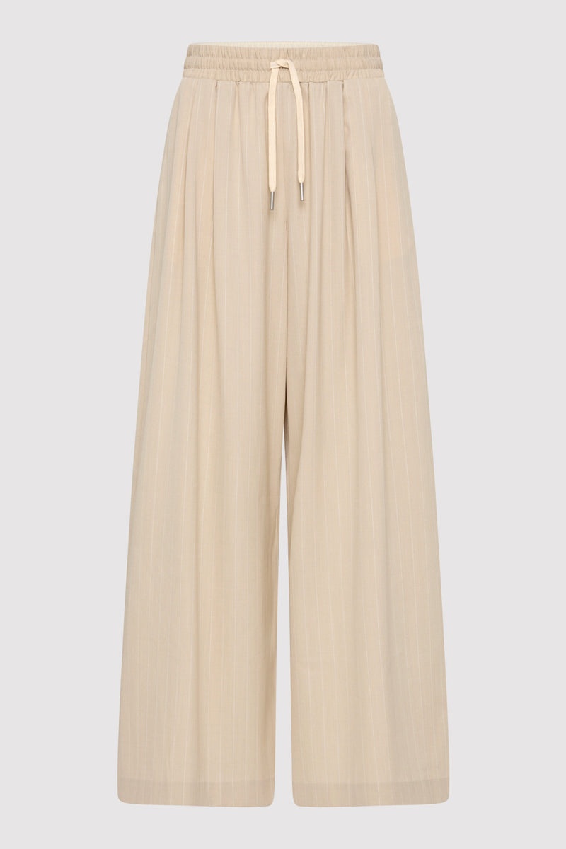 The Pinstripe Wool Drawstring Pants in responsibly sourced wool are crafted to a mid-rise design. Featuring a drawstring waist, wide leg and pleat detail. Combining elements of casual and formalwear, the Pinstripe Wool Drawstring Pants are a versatile hero piece for all occasion wear. DETAILS Materials - 96% RWS Wool / 4% Elastane - Lining: 100% Lyocell Twill - RWS Wool Certificate Garment Details - Mid-rise, drawstring waist, pleated, wide leg - Relaxed fit Manufacturing - Manufacturer has signed the St. Agni Code of Conduct - Fairwear Audit - Responsibly made in China CARE - Dry clean only - Do not bleach - Do not tumble dry