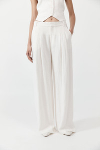 Inspired by the slouchy, boxy silhouettes of traditional menswear, the Tailored Linen Pants are crafted from 100% linen for a breathable, and cool transeasonal trouser. Boasting a low-slung waist, pleated front, wide leg shape, belt loops and side pockets, the Tailored Linen Pants were made for easy, everyday wear. Pair it with the matching Tailored Linen Vest for an effortless ensemble. DETAILS Materials - 100% Linen - European Flax Garment Details - Low waisted, pleat front, wide leg, belt loops, side pockets Manufacturing - Manufacturer has signed the St. Agni Code of Conduct - BCSI Social Audit - Responsibly made in China CARE - Dry clean only - Do not bleach or tumble dry - Warm iron with cloth