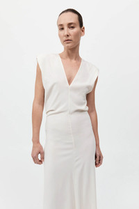 Plunge Drape Dress - Off White