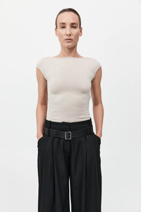 Crafted from soft Milano knit, the Sculpted Ballet Knit Top features a flattering bateau neckline and cap sleeves. An open back balances sophistication with subtle allure. Designed for a streamlined fit, the Sculpted Ballet Knit Top offers a sculpted silhouette, perfect for elevated everyday wear. DETAILS Materials - 88% TENCEL ™ Lyocell / 11% Nylon / 1% Elastane - LENZING™ Certificate Garment Details - Cap sleeves, bateau neckline, open back - Fitted Manufacturing - Manufacturer has signed the St. Agni Code of Conduct - SMETA Sedex Ethical Audit - Made responsibly in China CARE - Wash and dry garment turned inside out - Cold handwash separately in mild detergent - Do not soak - Do not bleach - Do not twist or wring - Do not tumble dry - Dry flat in shade - Ease into shape - Cool iron on reverse side - Do not hang - Store flat - Do not dry clean (X)