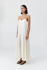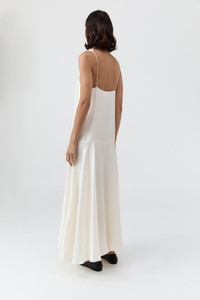 An elevated silhouette, the Silk Twill Relaxed Slip Dress is anchored by fluid draping, falling to a relaxed circle skirt and 7/8 length. Executed in 100% Silk, featuring a V-neckline, thin rouleau straps and front panel detailing. The Silk Twill Relaxed Slip Dress is an effortless expression of understated elegance. DETAILS Materials - 100% Silk Garment Details - 7/8 length, v-neckline, sleeveless, thin rouleau straps, front panel detail, full circle skirt, unlined - Relaxed fit Manufacturing - SMETA Sedex Ethical Audit - OEKO-TEX Standard 100 Certification - Responsibly made in China CARE - Do not bleach - Do not tumble dry - Do not soak - Iron on low heat under Cloth - Dry clean (P)