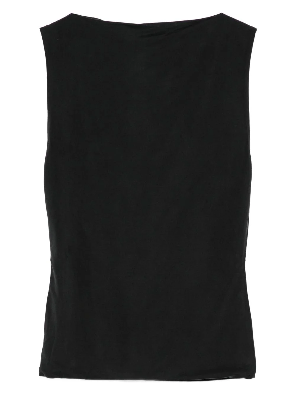 sleeveless top Highlights - Black - Boat neck - Sleeveless Imported Composition Fabric 100% SIZE & FIT Model measurements Height 5 ft 9 in(1.76 m) Bust/Chest 31.49 in(80 cm) Hips 35.03 in(89 cm) Waist 24.8 in(63 cm) Washing instructions Read Manufacturer Guidelines