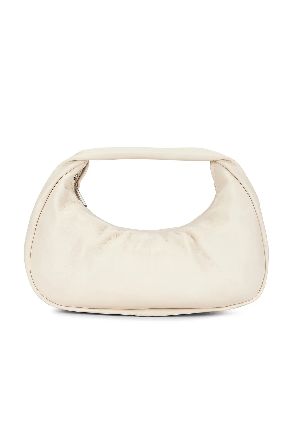- Lamb leather exterior with goat suede lining - Top zipper closure - One main compartment - Integrated handle - Measures approx 11" W x 5.5" H x 4" D Top handle with a 4.25" drop - Revolve Style No. SAGN-WY36 - Manufacturer Style No. S24-010CME