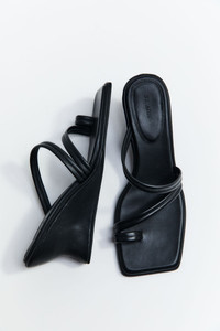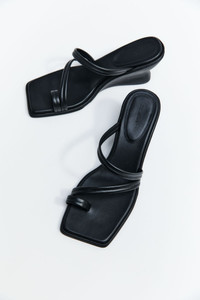 The Soft Strap Contour Wedge is an architectural statement heel, defined by sinuous lines and bold shapes. Featuring criss-cross leather straps, a square toe and a sculptural curved wedge heel. Perfect for elevating any ensemble, the Soft Strap Contour Wedge delivers refined minimalism and a modern edge. DETAILS Materials - Upper: 100% Lambskin - Insole: 100% Lambskin - Outsole: 100% Rubber - Chrome Free Dyed - Leather Working Group (LWG) Certified Garment Details - Lambskin upper straps, curved shape wedge Manufacturing - Manufacturer has signed the St. Agni Code of Conduct - BSCI Social Audit - Made responsibly in China CARE Natural Leather Protector is recommended before wear. Keep out of direct sunlight to avoid fading and avoid wet weather. Marks and variations in the leather are not considered a fault but are inherent to the natural beauty and uniqueness of the leather. When not in use we advise to store your St. Agni product in its protective bag and to occasionally treat it with a leather conditioner to keep it hydrated.