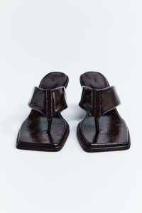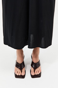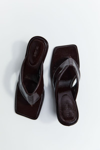 The Soft Thong Contour Wedge seamlessly blends modern design with timeless appeal. Characterised by sinuous lines and sculptural shapes, featuring thong straps, a square toe and a curved wedge heel. Offering a sleek, minimalist aesthetic that exudes understated refinement, the Soft Thong Contour Wedge is perfect for elevating any ensemble. DETAILS Materials - Upper: 100% Calfskin - Insole: 100% Calfskin - Outsole: 100% Rubber - Chrome Free Dyed - Leather Working Group (LWG) Certified Garment Details - Lambskin thong upper, curved shape wedge Manufacturing - Manufacturer has signed the St. Agni Code of Conduct - BSCI Social Audit - Made responsibly in China CARE Natural Leather Protector is recommended before wear. Keep out of direct sunlight to avoid fading and avoid wet weather. Marks and variations in the leather are not considered a fault but are inherent to the natural beauty and uniqueness of the leather. When not in use we advise to store your St. Agni product in its protective bag and to occasionally treat it with a leather conditioner to keep it hydrated.