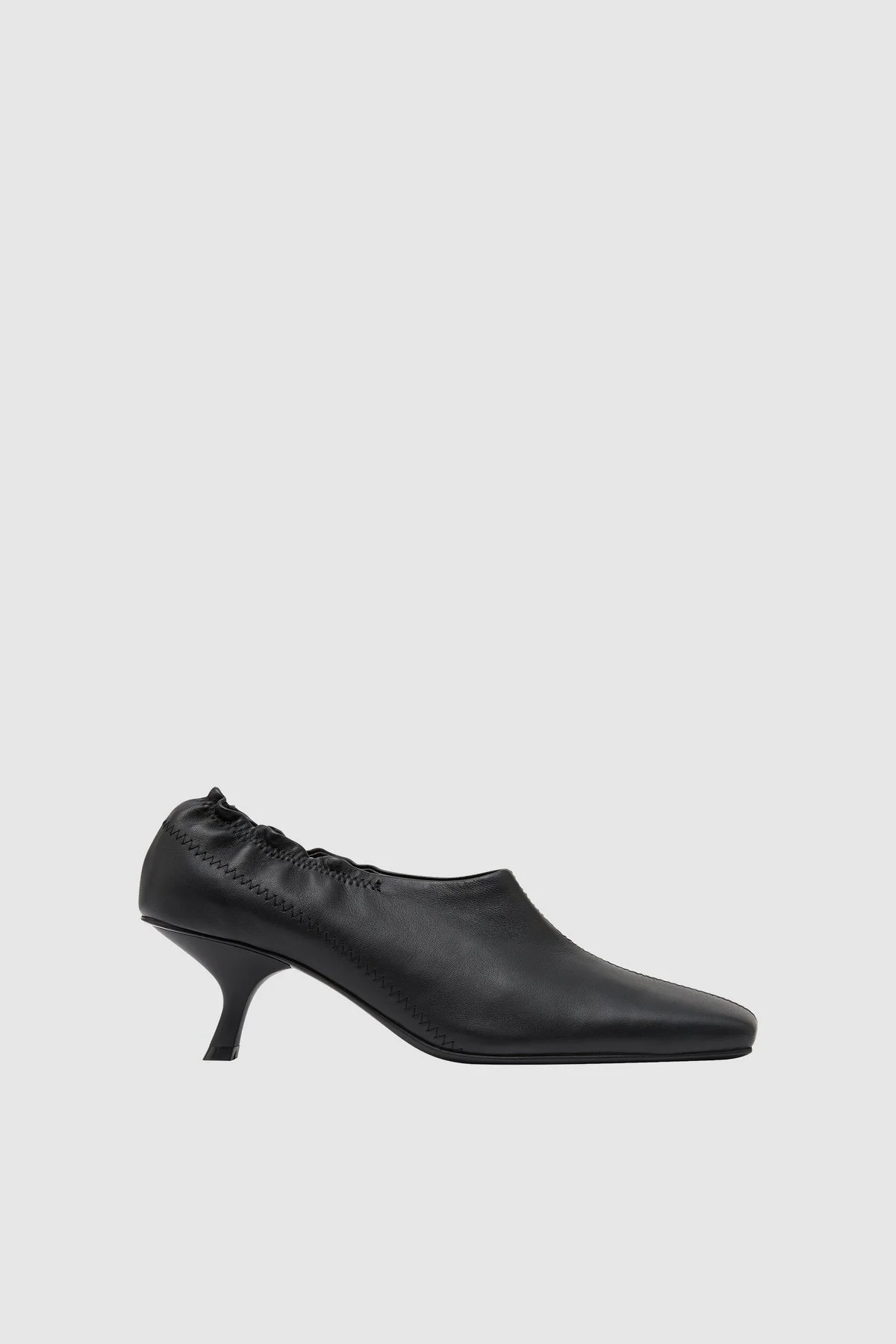 The Square Glove Heel offers a sleek, form-fitting silhouette. Crafted with a sock-style upper, squared pointed toe and zig-zag stitching, the Square Glove Heel is completed with an elasticated back and sculpted curved heel. A sophisticated heel designed to contour the foot. DETAILS Materials - Upper: 100% Lambskin Leather - Lining: 100% Lambskin Leather - Insole: 100% Lambskin Leather - Outsole: 100% Bovine Leather - Leather Working Group (LWG) Certified Garment Details - Sock style heel, squared pointed toe, zig-zag stitch detail, elasticated back, curved heel Manufacturing - BSCI Social Audit - Manufacturer has signed the St. Agni Code of Conduct - Responsibly made in China SIZING - Heel height: 6cm - Height (including insole): 7cm CARE Natural Leather Protector is recommended before wear. Keep out of direct sunlight to avoid fading and avoid wet weather. Marks and variations in the leather are not considered a fault but are inherent to the natural beauty and uniqueness of the leather. When not in use we advise to store your St. Agni product in its protective bag and to occasionally treat it with a leather conditioner to keep it hydrated.