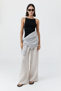Minimal and refined, the Square Neck Top features a clean square neckline, delicate thin straps and a low scooped back. Designed with simplicity in mind, the Square Neck Top is a statement in subtlety. DETAILS Materials - 59% - TENCEL™ Lyocell / 20% Naia™ Acetate / 18% Nylon / 3% Elastane - LENZING™ Certificate - NAIA™ Certificate Garment Details - Square neckline, thin straps, low armholes, low scooped back - Fitted Manufacturing - SMETA Sedex Ethical Audit - ISO 9001 Management System Certificate - HIC ISO 14005 Environmental Management System Certificate - HIC ISO 45001 Occupational Health & Safety Management System Certificate - Manufacturer has signed the St. Agni Code of Conduct - R - esponsibly made in China CARE - Wash and dry garment turned inside out - Cool hand wash separately in mild detergent - Do not soak - Do not bleach - Do not twist or wring - Do not tumble dry - Dry flat in shade - Ease into shape - Cool iron on reverse side - Do not hang, store flat - Do not dry clean (X)