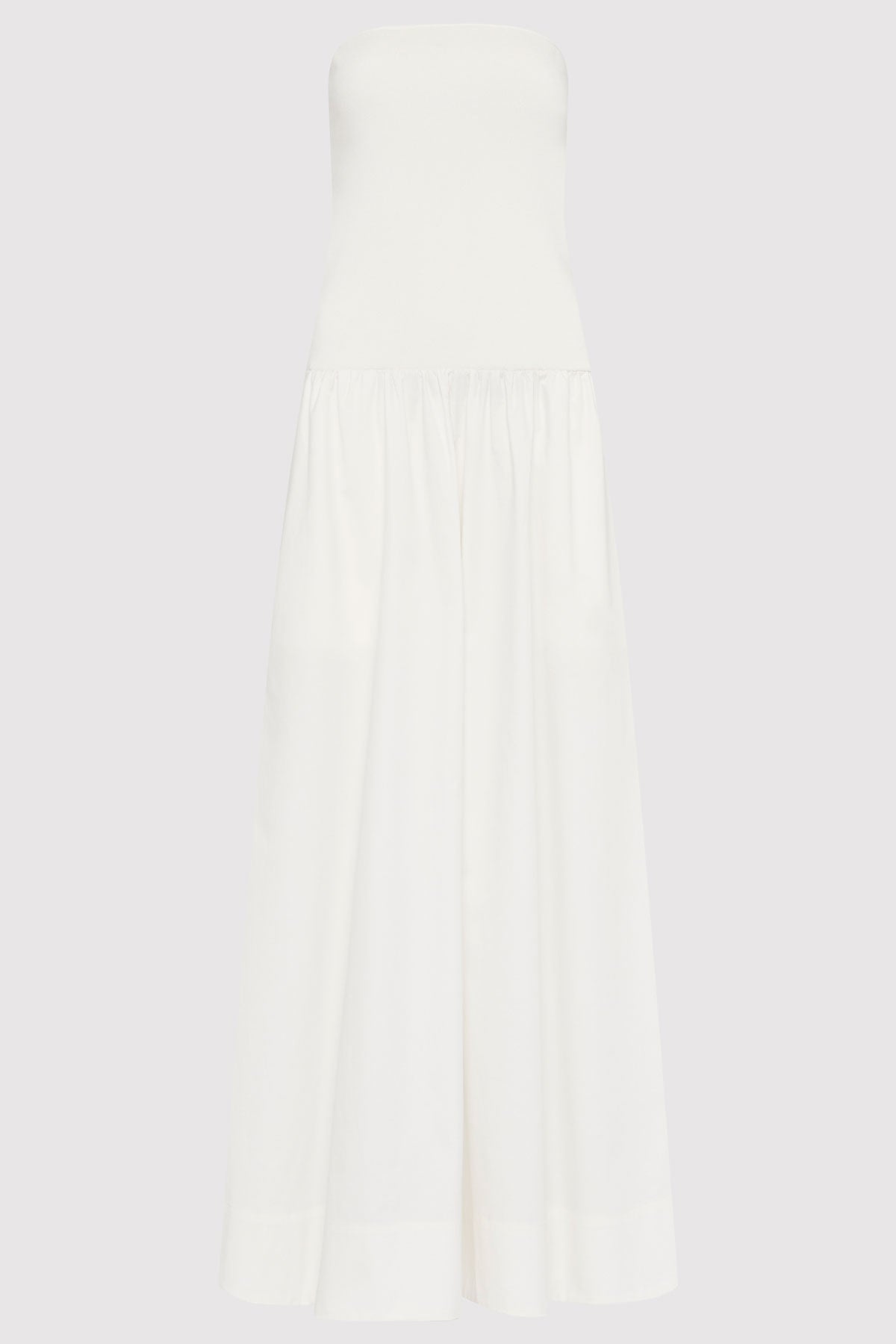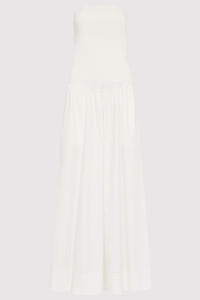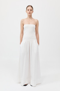 A laidback and feminine take on the classic maxi, the Strapless Dress boasts a knitted bodice, A-line silhouette and maxi length. The Strapless Dress is ideal for day-to-night styling and bound for high-rotation in the minimalist wardrobe. DETAILS Materials - Bodice: 53% Viscose - / 47% Recycled Polyester - Skirt: 100% BCI Cotton - BCI Cotton Certificate - Recycled Polyester (GRS) Certificate Garment Details - Strapless, knitted bodice, a line maxi length, fitted bodice, relaxed skirt Manufacturing - Manufacturer has signed the St. Agni Code of Conduct - SMETA Sedex Ethical - OEKO-TEX 100 Certification - Responsibly made in China CARE - Cool hand wash - Wash with similar colours - Do not bleach - Do not tumble dry - Cool iron under cloth - Dry cleanable (P)