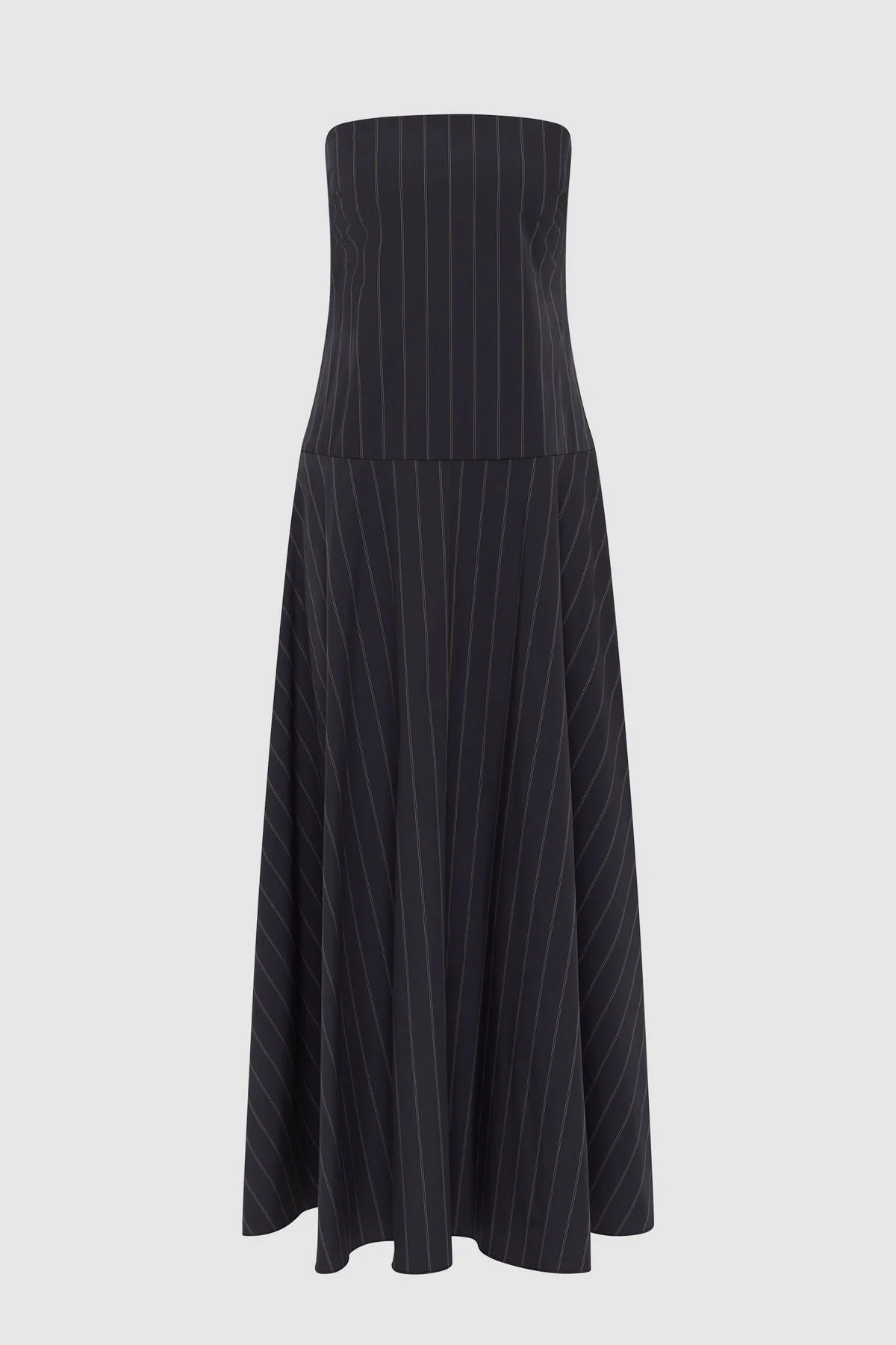 The Strapless Rouleau Dress is crafted from a breathable blend of cotton and recycled nylon, featuring a fitted strapless bodice that falls into a relaxed, full circle skirt at a maxi length. An open back is balanced by a delicate rouleau tie with button fastening. Refined and fluid, the Strapless Rouleau Dress offers an understated approach to modern occasion dressing. DETAILS Materials - 66% Cotton / 31% Recycled Nylon / 3% Elastane - Recycled Nylon (GRS) Certificate Garment Details - Maxi length, strapless bodice, bust darts, open back, tie back detail with button fastening, centre-back invisible zip, full circle skirt, lined bodice - Fitted bodice, relaxed skirt Manufacturing - SGS Social Accountability - Manufacturer has signed the St. Agni Code of Conduct - Responsibly made in China CARE - Cool hand wash - Wash with similar colours - Do not bleach - Do not tumble dry - Iron on low temperature under cloth - Dry clean (P)