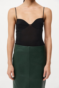 The Silk Cami features panel detailing, rouleau straps and an invisible side zip. Inspired by silhouettes from 90s lingerie with wireless cup detailing — a nod to underwear as outerwear. DETAILS Materials - 88% Silk / 12% Elastane Garment Details - Fixed rouleau straps, invisible side zip, panel detail Manufacturing - Manufacturer has signed the St. Agni Code of Conduct - Fairwear Audit - Oeko-tex 100 Certification - Responsibly made in China CARE - Dry Clean P - Do not bleach - Do not tumble dry - Do not soak - Iron on low heat under cloth