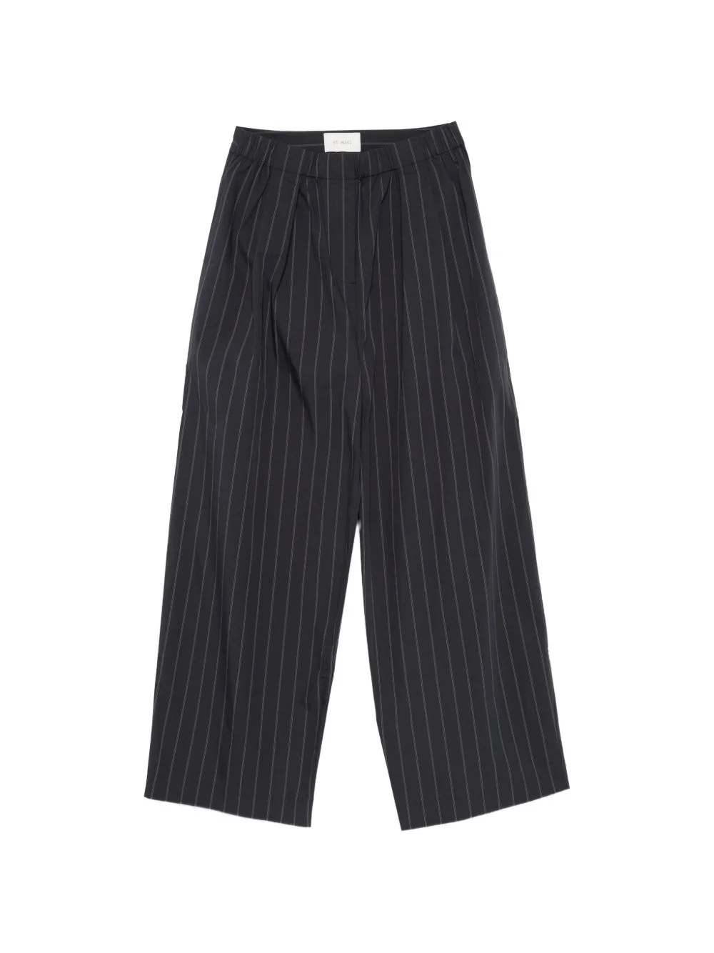 striped pleated trousers Highlights - Blue - Pleat detailing - Wide leg - Elasticated waistband Imported Composition Cotton 66%, Recycled Nylon 31%, Spandex/Elastane 3% Washing instructions Hand Wash