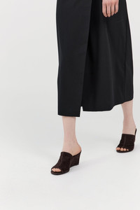 Crafted from soft suede for a supple, lived-in feel, the Suede Bandeau Wedge features a wide strap detailed with a subtle centre stitch. Set on a sculptural wedge heel with an open toe, the Suede Bandeau Wedge offers a considered balance of ease and elevation. DETAILS Materials - Upper: 100% Lambskin Leather - Lining: 100% Lambskin Leather - Insole: 100% Calfskin Leather - Outsole: 100% Bovine Leather - Leather Working Group (LWG) Certificate - Chrome free dyed Garment Details - Classic slip-on wedge, soft suede, centre stitch detail, contrast insole detail Manufacturing - BSCI Social Audit - Manufacturer has signed the St. Agni Code of Conduct - Responsibly made in China SIZING - Heel height: 8cm CARE - Gently wipe clean with a soft cloth when needed - Apply a leather protector of your choice before wear to help guard against the elements - Protective sole stickers may be applied if desired - Avoid prolonged exposure to water. If wet, allow to air dry naturally – away from direct heat or sunlight - Store in a cool, dry place inside the breathable dust bag provided - Keep out of direct sunlight and humid environments - To maintain shape, use shoe forms or gently stuff with tissue when storing - Rotate between wears to allow your footwear time to breathe and recover
