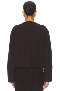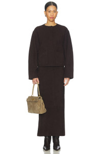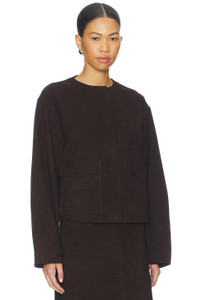 - 100% goatskin leather Lining: 100% lyocell - Made in India - Professional leather cleaning - Front magnetic closure - Front patch pockets - Genuine suede fabric - Revolve Style No. SAGN-WO15 - Manufacturer Style No. W25-310COF