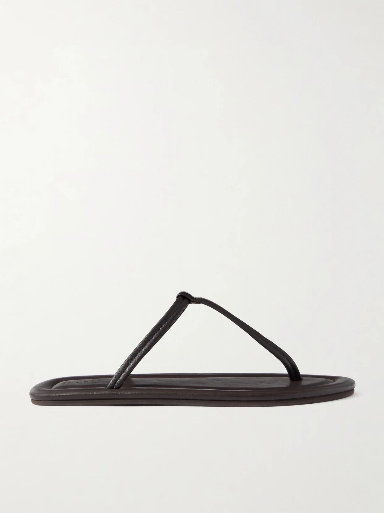 ST. AGNI's sandals are made from soft leather with a particularly stark T-bar strap on a minimalist sole. Their streamlined design makes them easy to take on vacation.