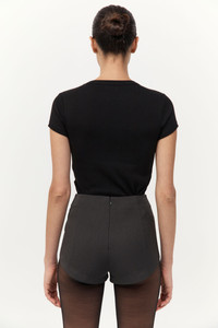 Crafted for the modern minimalist wardrobe, the Tailored Brief features a high waist, cropped leg, and subtle side-hem curve. With a sleek back zip and slim fit, the Tailored Brief elongates the leg for a playful yet sophisticated silhouette. A versatile layering essential, it offers timeless appeal for effortless styling. DETAILS Materials - 96% RWS Wool - 4% Elastane - RWS Wool Certificate Garment Details - Mini length, high-waisted, panel detail, center-back invisible zip, curved hem, unlined Manufacturing - Fairwear Audit - Manufacturer has signed the St. Agni Code of Conduct - Responsibly made in China CARE - Dry clean only - Do not bleach - Do not tumble dry - Iron on low temperature