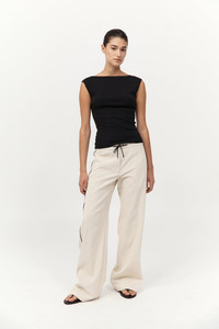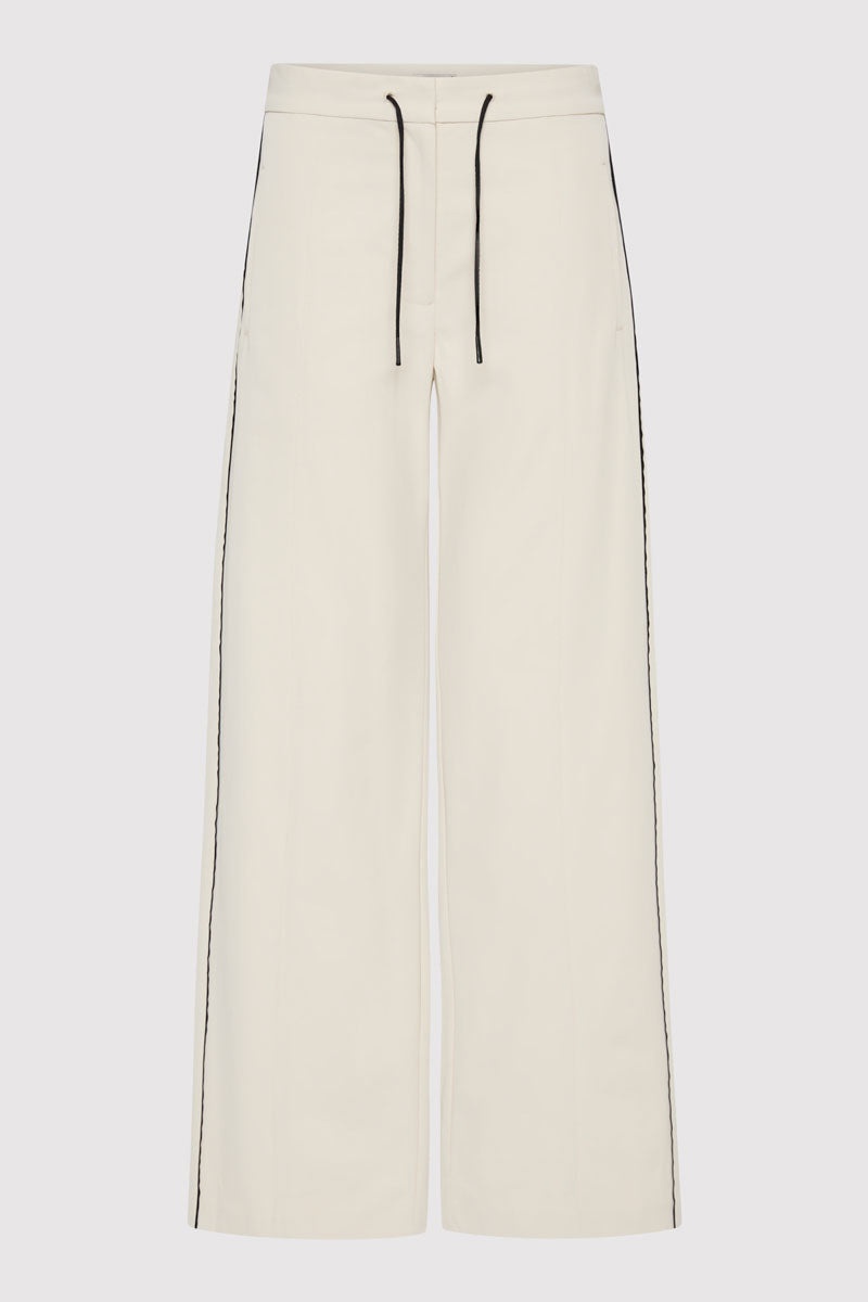 The Tailored Track Pants offer a relaxed silhouette, crafted from a recycled nylon and organic cotton blend. Designed with a mid-rise waist, adjustable drawstring and contrast piping detail, the Tailored Track Pants blend casual ease with refined tailoring. A modern staple for elevated everyday wear. DETAILS Materials - 70% Recycled Nylon - 30% Organic Cotton - Recycled Polyester (GRS) Certificate - Organic Content Standard (OCS) Certificate Garment Details - Mid-rise, drawstring waist, contrast piping detail, front fly closure, side-front welt pockets, back welt pockets, relaxed leg, unlined Manufacturing - OEKO-TEXT 100 Certification - Fairwear Audit - Manufacturer has signed the St. Agni Code of Conduct - Responsibly made in China CARE - Cool gentle machine wash - Wash with similar colours - Do not bleach - Do not tumble dry - Iron on low temperature