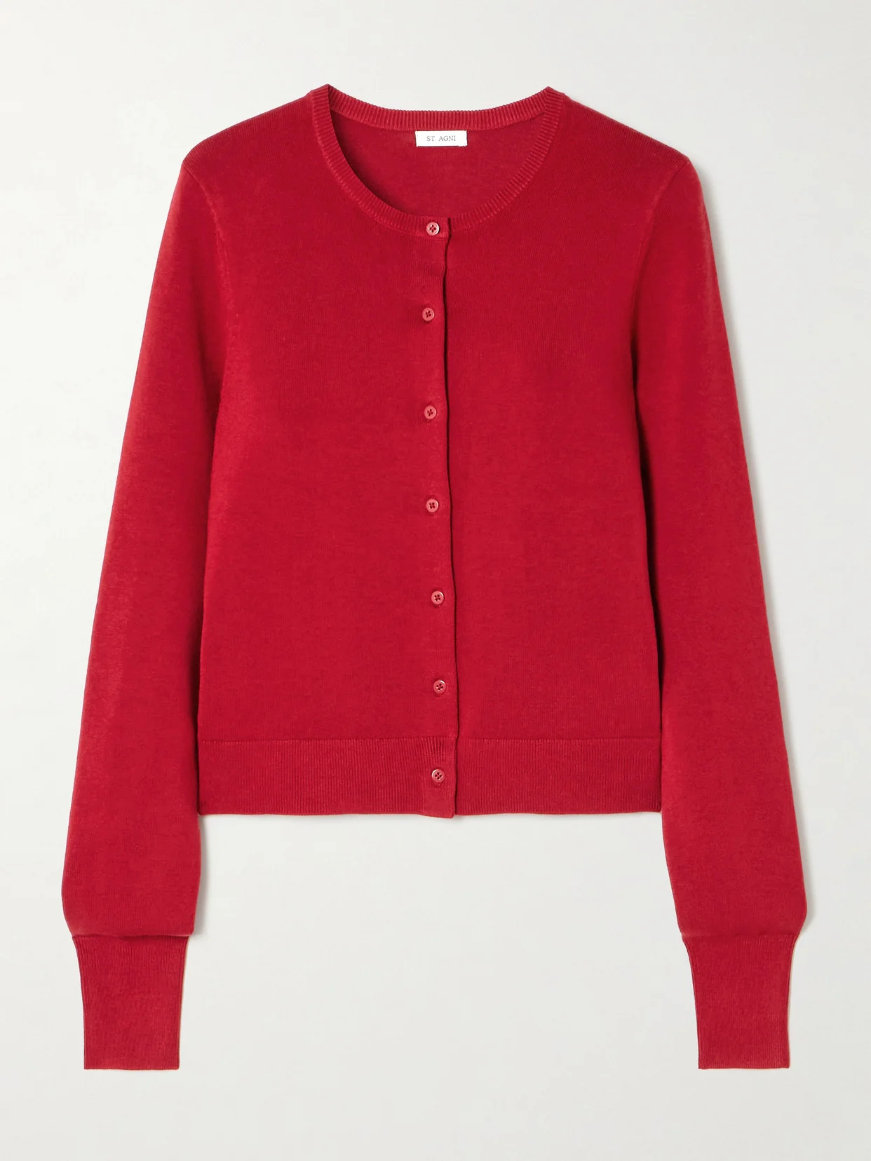 "There's a reason traffic 'Stop' signs are red: this statement-making color commands attention" we wrote in Porter ; and ST. AGNI's cardigan is an easy way to embolden any outfit. It's made from TENCEL ™ Lyocell-blend, has a classic crew neck and is finished with comfy ribbed trims. Lower-Impact Materials. This product is made using at least 50% lower-impact materials oringredients. Find out more about our NET SUSTAIN criteria here.