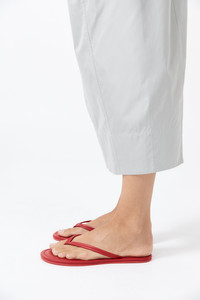 The Thong Detail Slide embraces ease and craftsmanship. With slim leather straps and contrast stitch detailing, featuring a padded insole for comfort. A timeless warm-weather staple for considered dressing. DETAILS Materials - Upper: 100% Lambskin Leather - Insole: 100% Calfskin Leather - Outsole: 100% Rubber - Leather Working Group (LWG) Certified Garment Details - Classic thong, leather straps with stitch detail, soft padded insole Manufacturing - BSCI Social Audit - Manufacturer has signed the St. Agni Code of Conduct - Responsibly made in China SIZING - Heel height: 0.5cm CARE Natural Leather Protector is recommended before wear. Keep out of direct sunlight to avoid fading and avoid wet weather. Marks and variations in the leather are not considered a fault but are inherent to the natural beauty and uniqueness of the leather. When not in use we advise to store your St. Agni product in its protective bag and to occasionally treat it with a leather conditioner to keep it hydrated.
