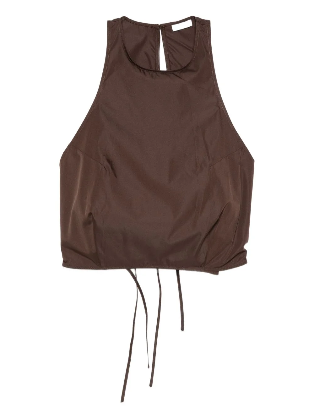 tie detail cocoon top Highlights - Brown - Tie fastening - Keyhole detail - Sleeveless - Cocoon style Imported Composition Recycled Polyester 80%, Polyester 20% SIZE & FIT Model measurements Height 5 ft 10 in(1.78 m) Bust/Chest 33.46 in(85 cm) Hips 36.22 in(92 cm) Waist 23.22 in(59 cm) Washing instructions Hand Wash