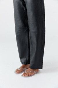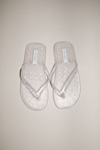 The Jelly Flip Flop reintroduces a nostalgic, while maintaining a modern, pared-back sensibility. Crafted in a semi-transparent finish, featuring slim straps and a circular footbed design, the Jelly Flip Flop is lightweight and versatile. A summer offering ease for everyday wear. DETAILS Materials - 100% PVC Garment Details - Flip flop, semi transparent PVC, bright finish, circular footbed design Manufacturing - Responsibly made in Italy SIZING - Heel height: 1cm CARE - Rinse with cold water after wear
